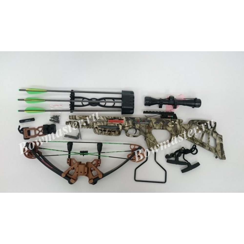 | Комплектация | Полная: оптический прицел 4х32, кивер Shelter, натяжитель Talon, 3 карбоновые стрелы, воск; "Голый": воск |